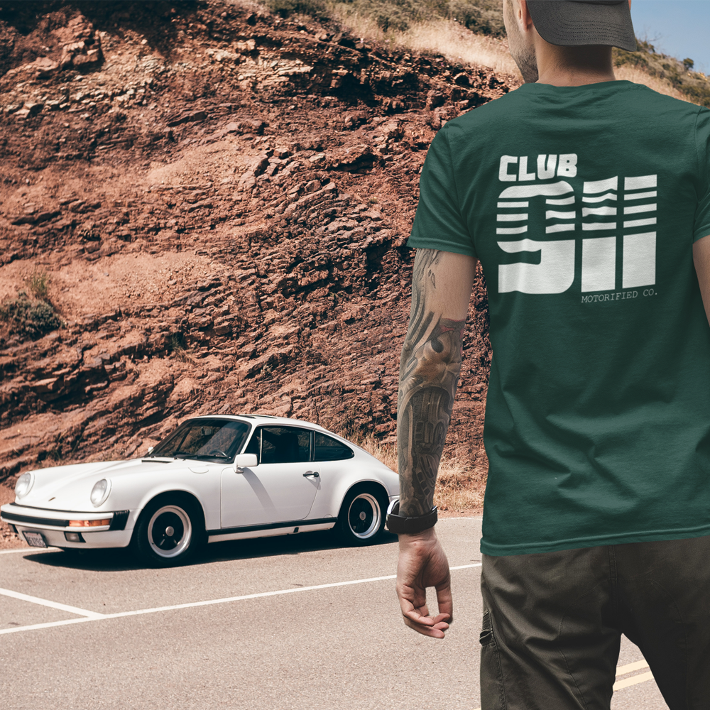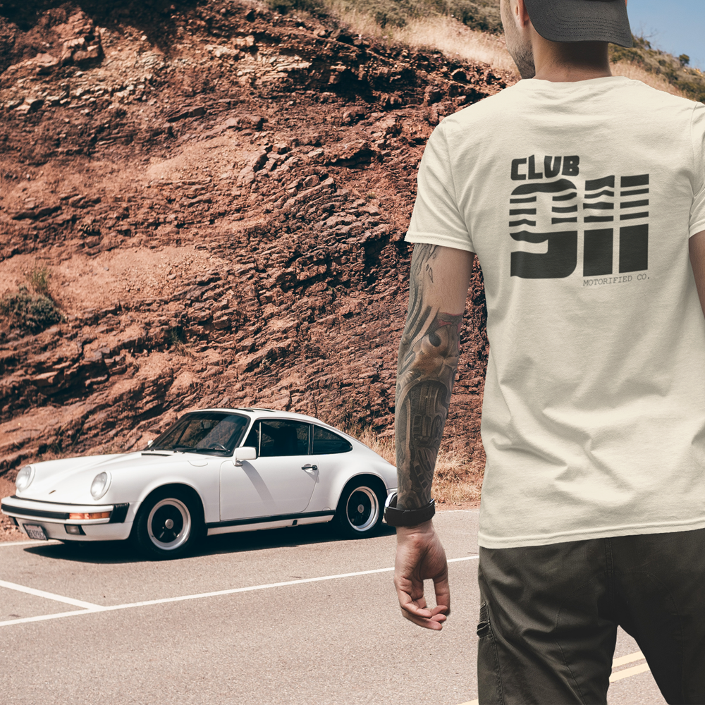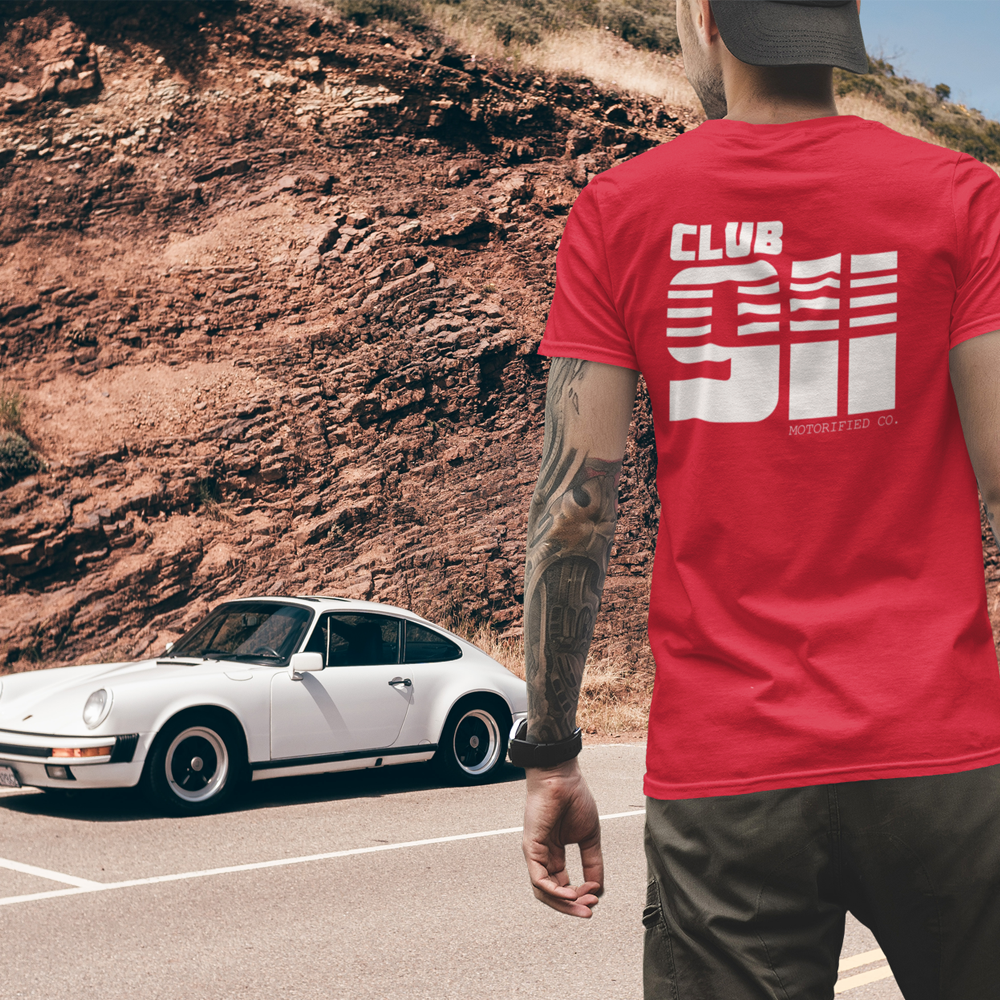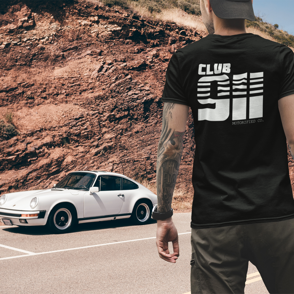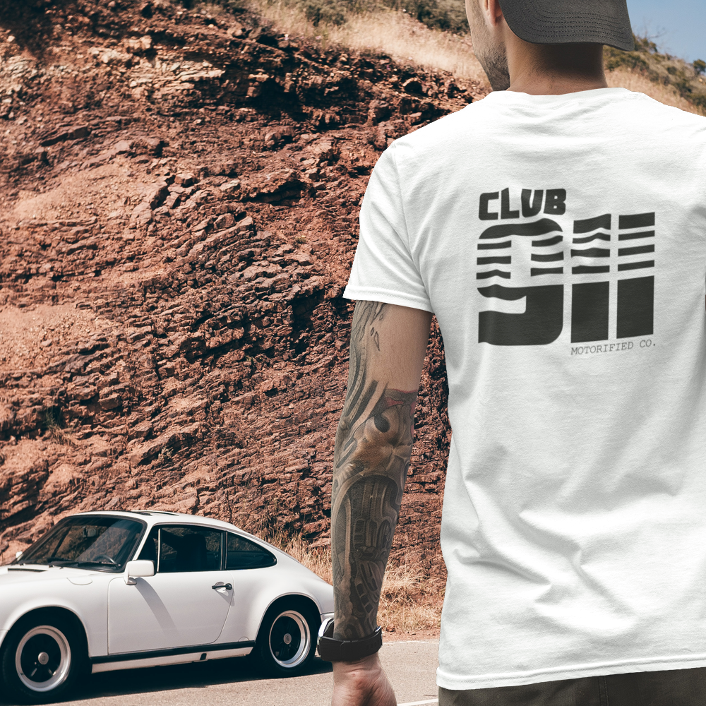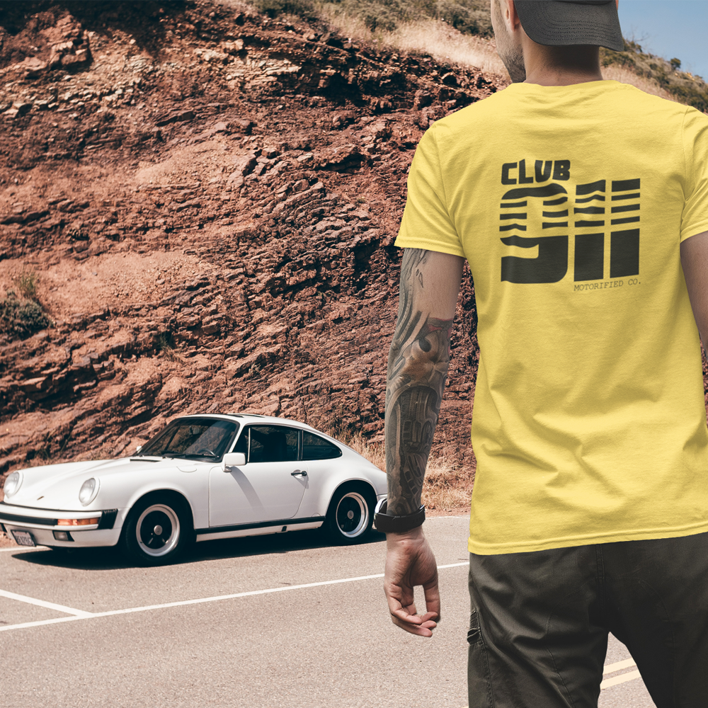 Porsche 911 Club Vintage Logo T-shirt. Features a big back print on 5 different colorways