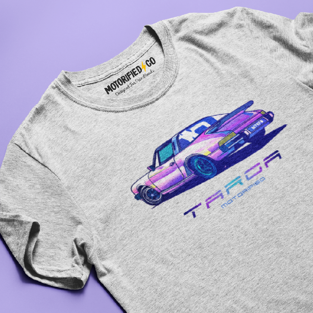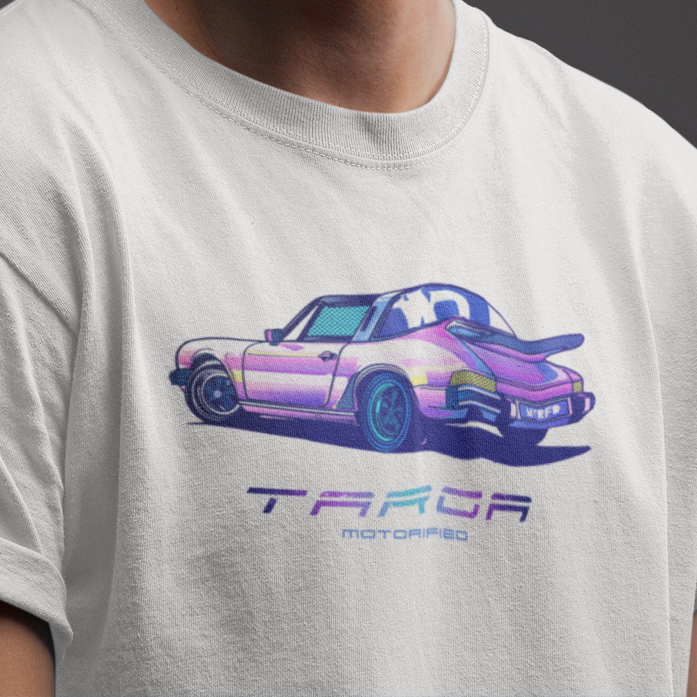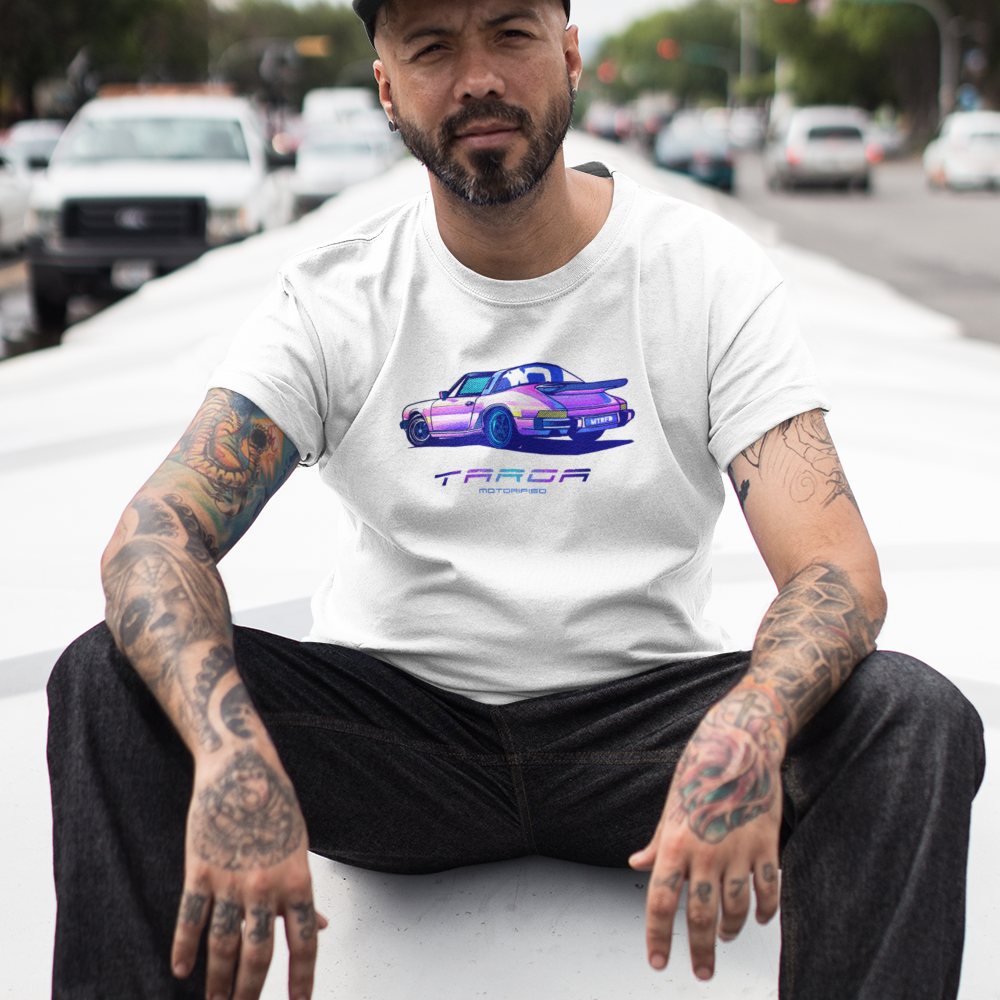 Retro Porsche 911 Targa Tshirt features an 80's neon print of the iconic classic 911 targa.