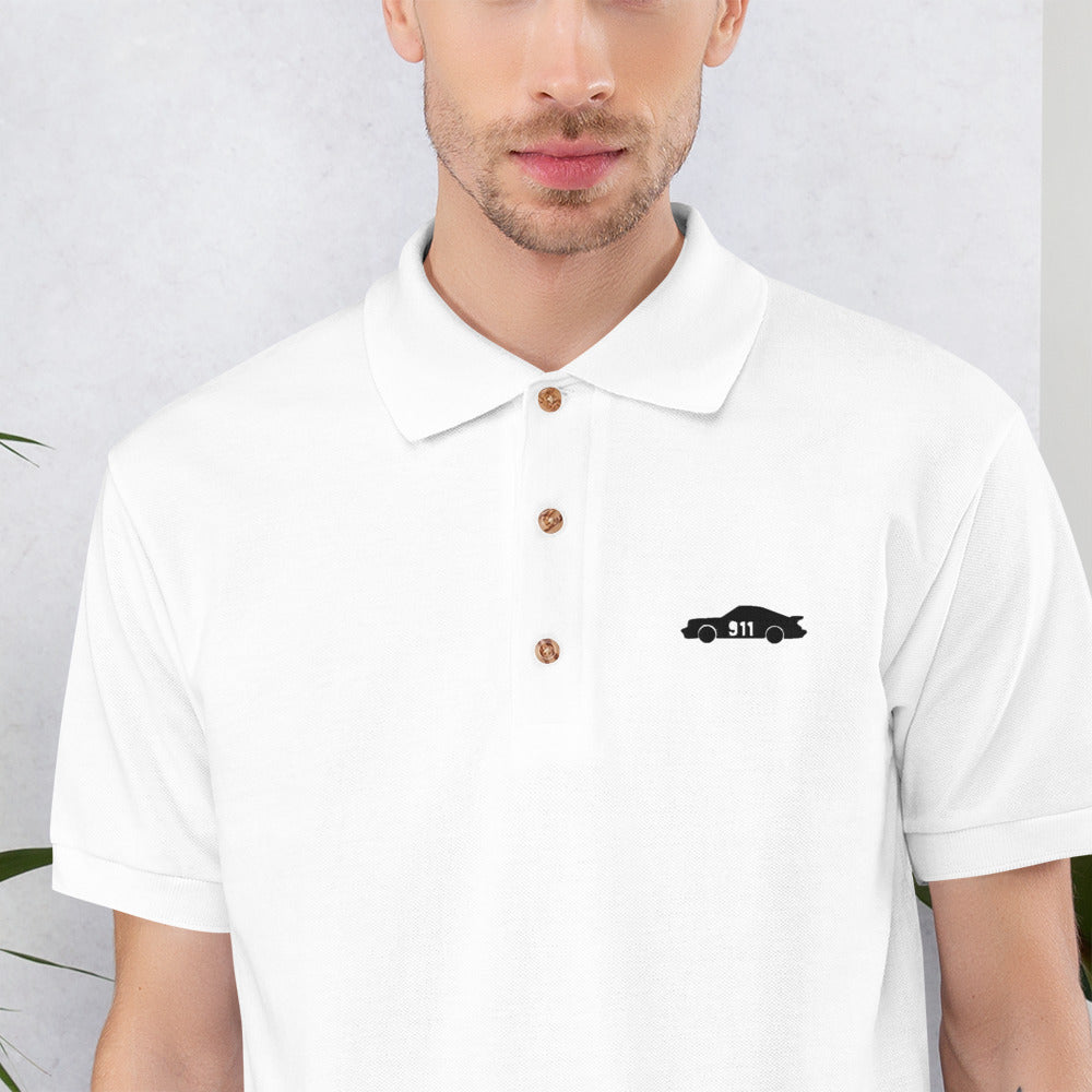 911 Embroidered Polo Shirt featuring a Porsche 911 silhouette embroidery.